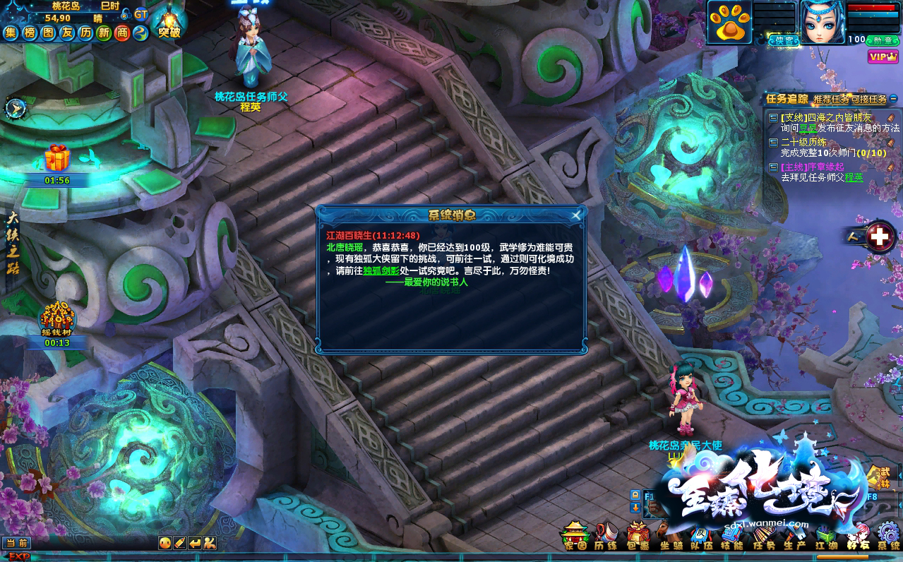 当等级提升到100级的时候会收到百晓生提示,根据提示去寻找“独孤剑影”完成化境任务。
